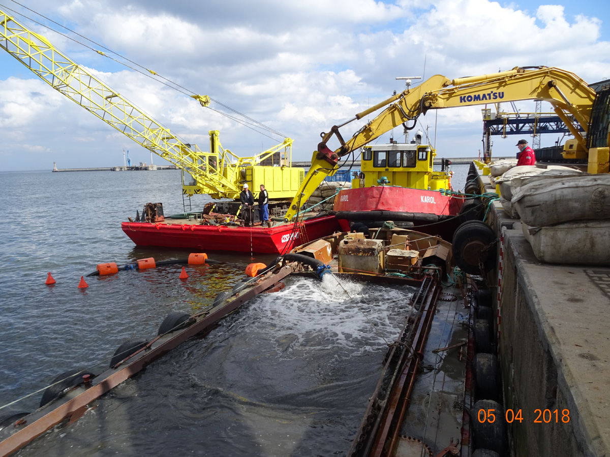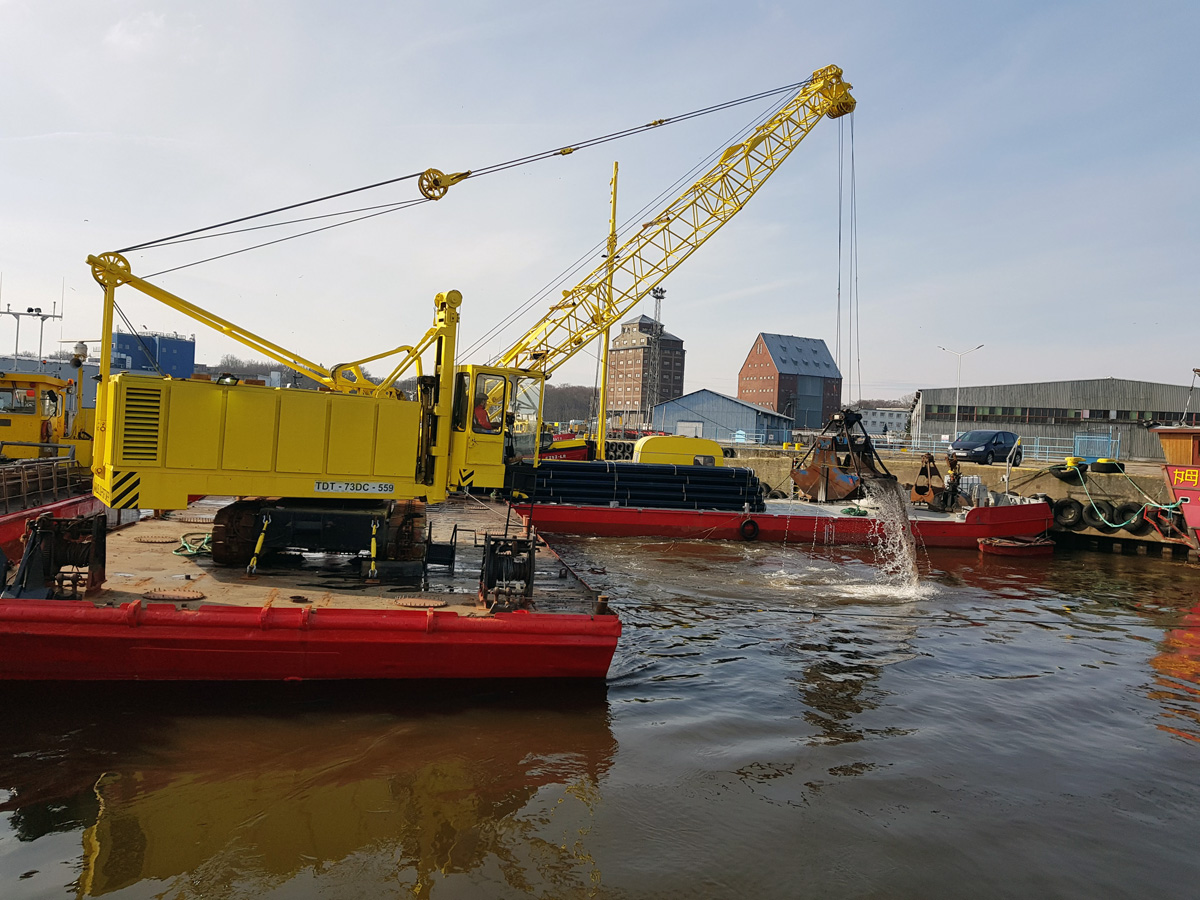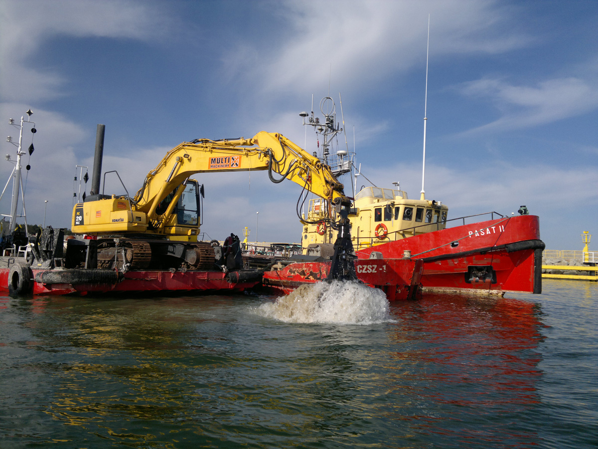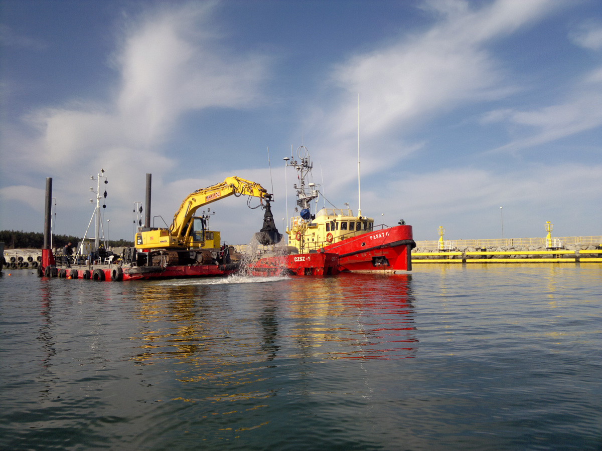 - pogłębianie basenów portowych i torów wodnych,